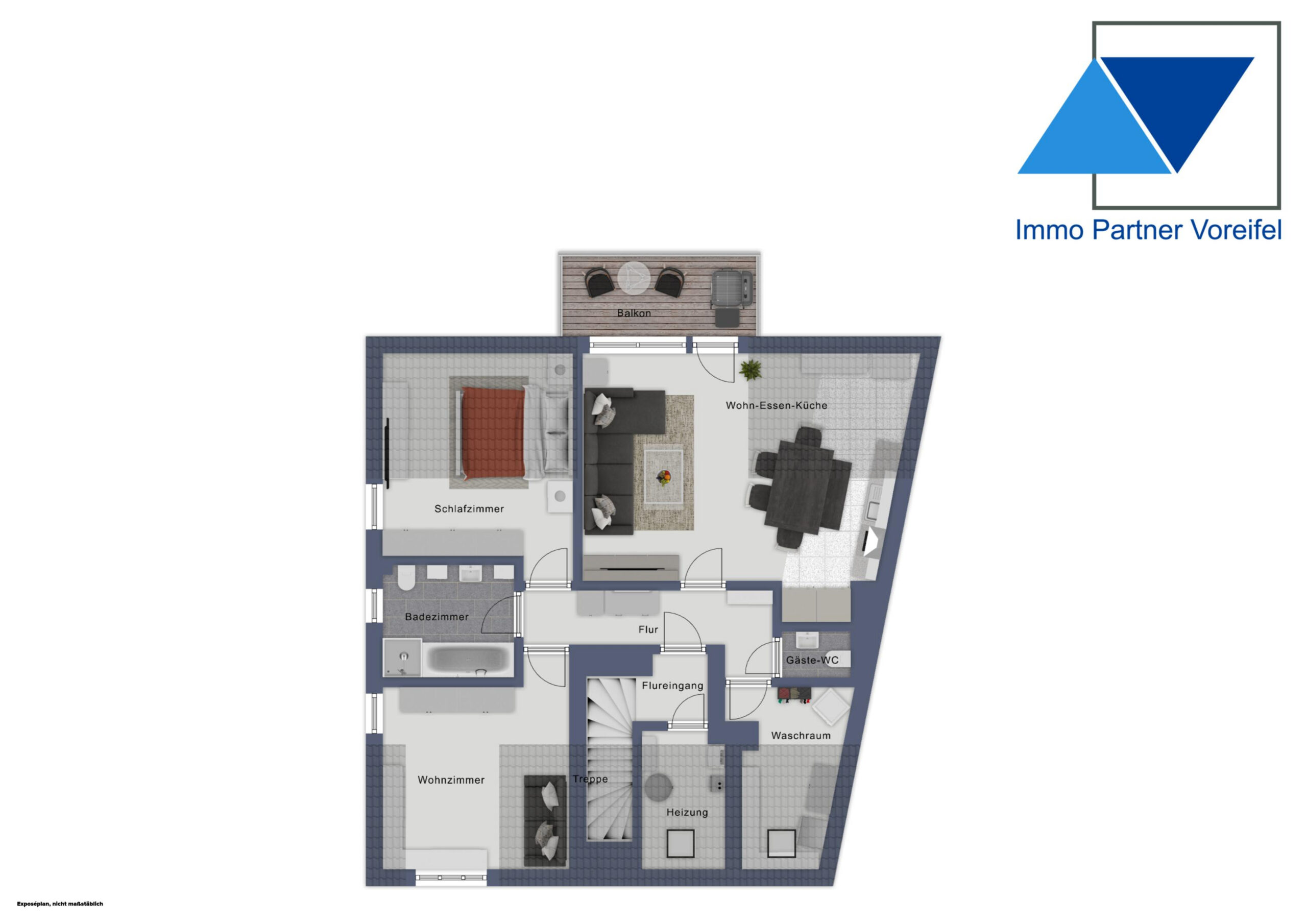 - Dachgeschoss: ca. 84 m² Wohnfläche, 3 Zimmer, Bad mit Wanne und Dusche, Balkon, 1 Stellplatz