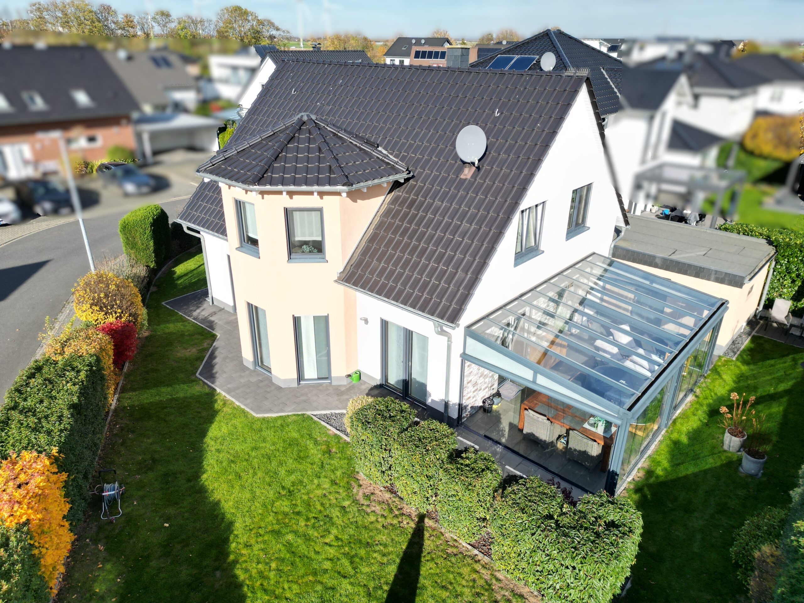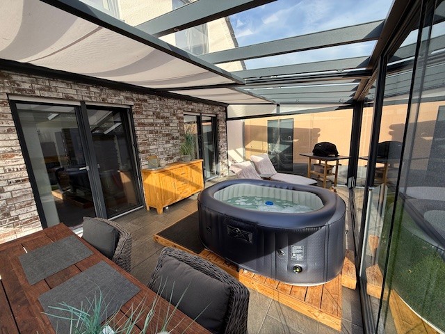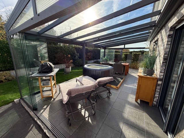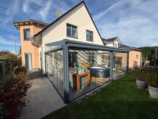 •Terrasse komplett verschließbar durch Glaselemente